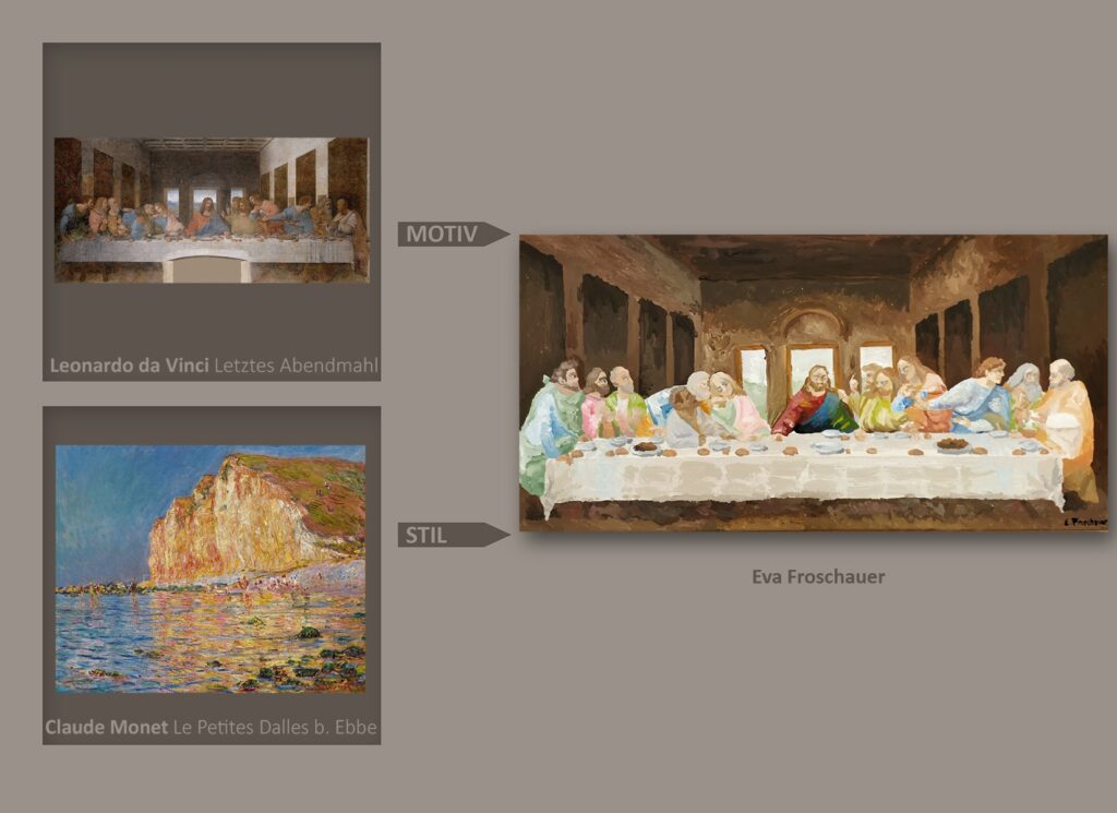 Es gibt viele Bilder aus der Kunstgeschichte, die jeder kennt oder zumindest schon einmal gesehen hat. Doch wie würde die Mona Lisa aussehen, wenn sie nicht Leonardo da Vinci in der Renaissance gemalt hätte sondern der Pop Art Künstler Roy Lichtenstein? Oder wie würden die Bilder von Cloude Monet wirken, wenn sich ihrer ein Expressionist angenommen hätte?
