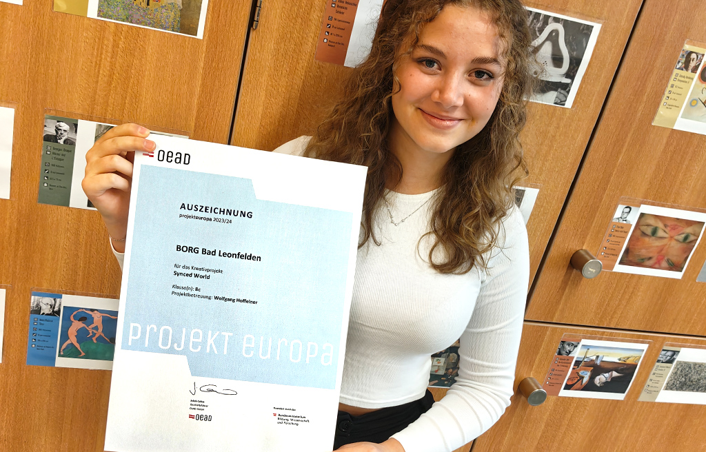 Beim renommierten Kreativwettbewerb “Projekt Europa” wurde das eingereichte Projekt für seine herausragende Kreativität und innovative Umsetzung mit einem Geldpreis in Höhe von € 450,- ausgezeichnet. Diese Anerkennung unterstreicht die Bedeutung und den Wert des Projekts im Rahmen des Wettbewerbs.