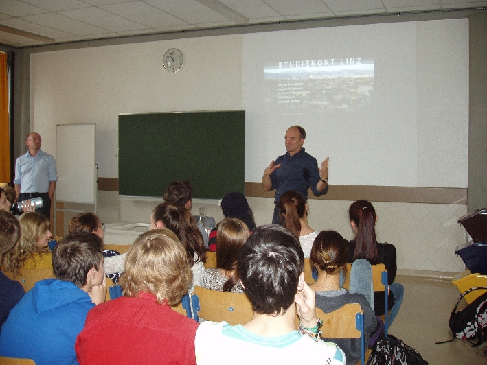 Zwei Herren der Polizei OÖ informierten unsere Schülerinnen und Schüler der drei 5. Klassen über die Gefahren im Internet und den sozialen Netzwerken.