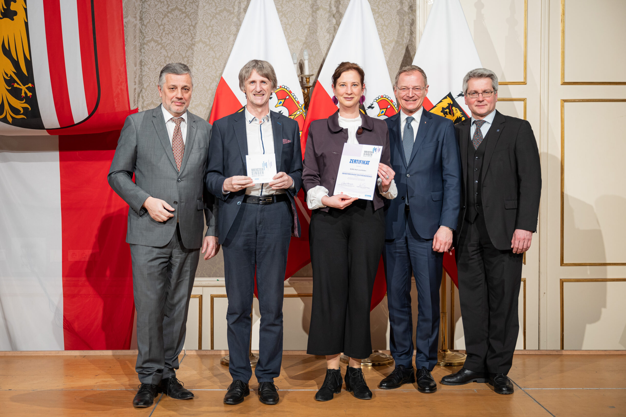 Landeshauptmann Mag. Thomas Stelzer überreichte das Zertifikat an Schulen als Auszeichnung für ihre vorbildlich qualitätsvolle Arbeit im Bereich der chorischen Jugendarbeit rückwirkend für das vergangene Jahr. Das von der Bildungsdirektion für OÖ, dem Chorverband OÖ und dem Land OÖ unterstützte Projekt honoriert die gute Zusammenarbeit von Schüler:innen, Chorleiter*innen und dem schulischen Umfeld.