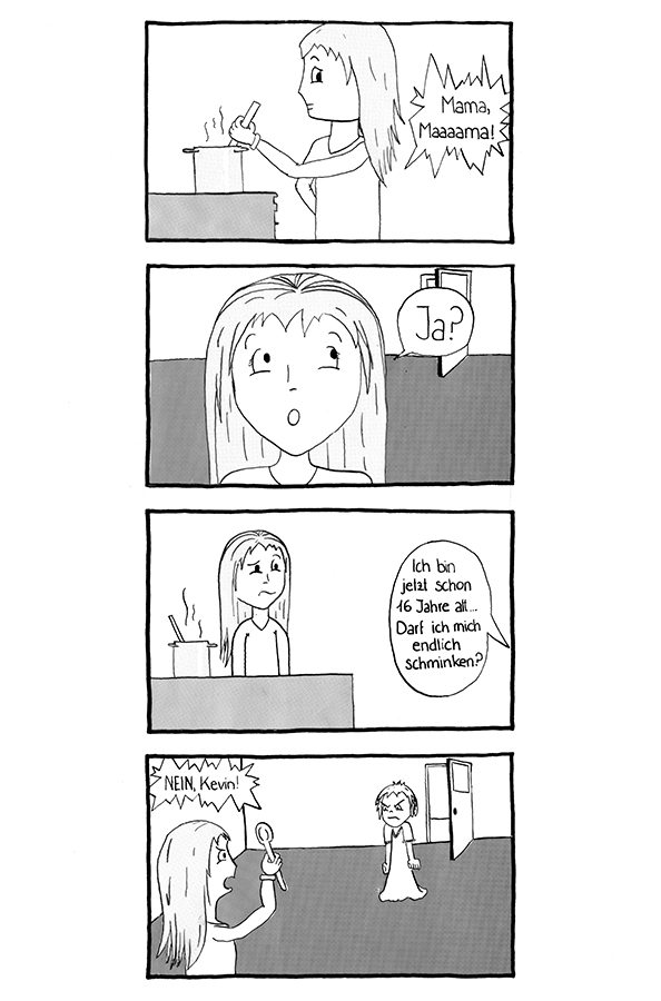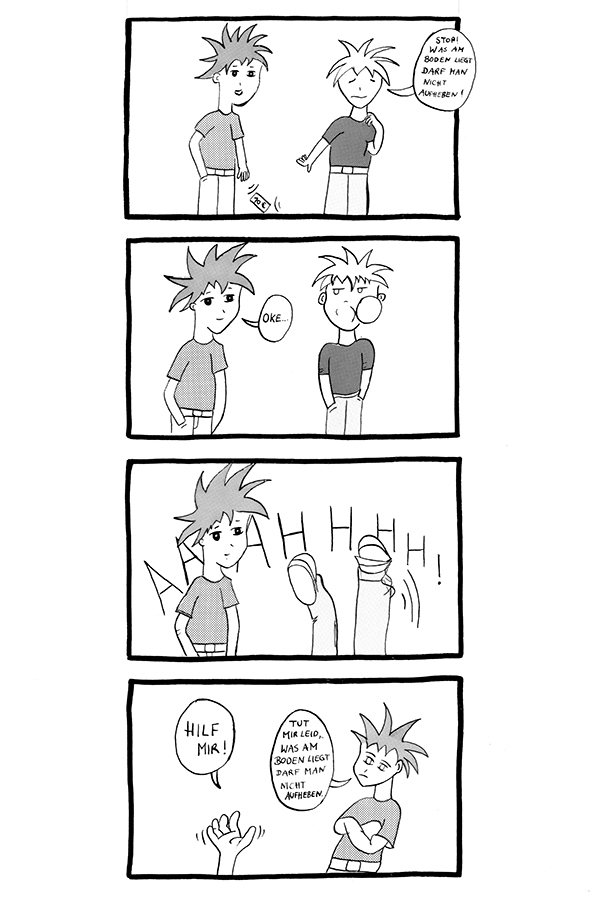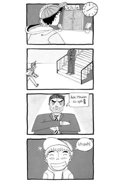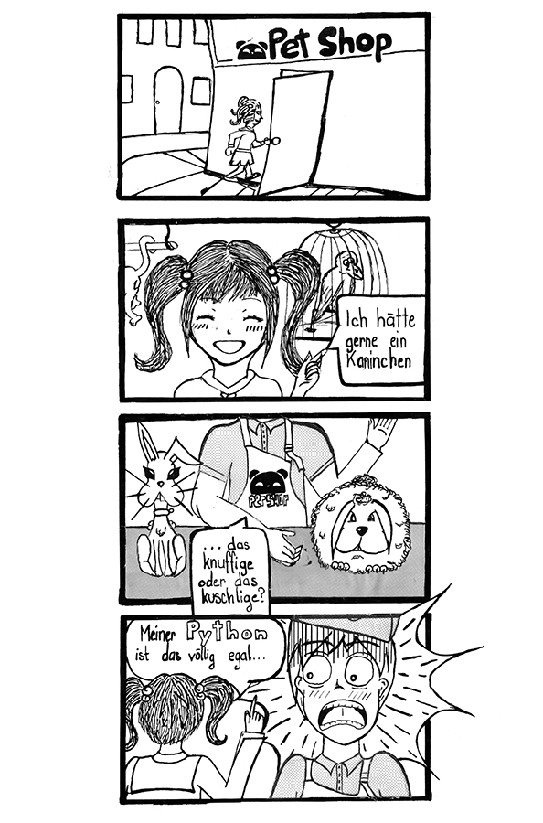 Der große Mangaboom der 90er Jahre hat Japanische Comics auch hierzulande bekannt gemacht. Und auch heute noch erfreuen sich Mangas und Animes großer Beliebtheit. Was dem westlichen Comic sein Strip ist, ist dem Japanischen Pendant der Yonkoma, eine kurze Geschichte bestehende aus vier einfachen Bildern, die meist im letzten Panel mit einer Pointe endet. Die Bilder sind dabei natürlich, entsprechend der japanischen Leserichtung, untereinander angeordnet. Oft finden Yonkomas Platz in Zeitungen oder als kleiner Bonus in Manga-Sammelbänden.